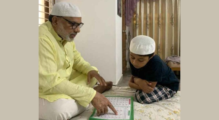 নাতির কাছে কায়দা শিখছেন অভিনেতা মিশা সওদাগর