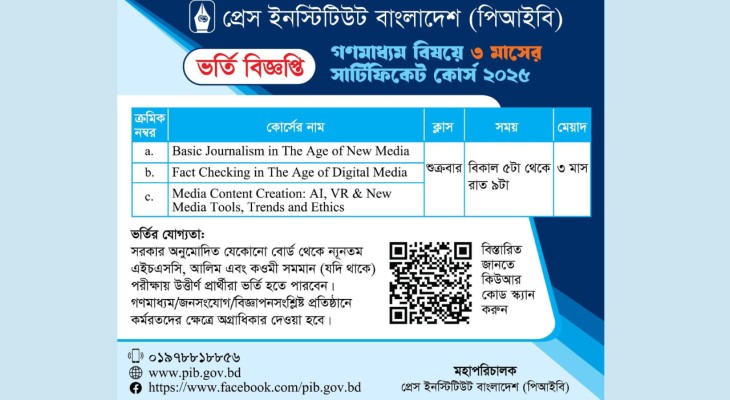 পিআইবির সাংবাদিকতা কোর্সে কওমিপড়ুয়াদেরও ভর্তির সুযোগ