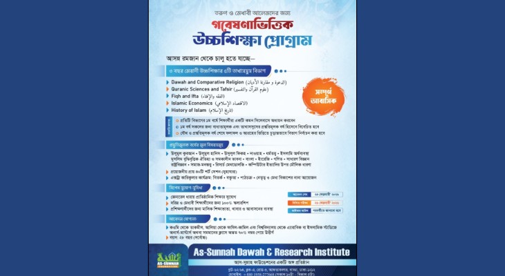 আস-সুন্নাহ ফাউন্ডেশনের উদ্যোগে চালু হচ্ছে গবেষণাভিত্তিক উচ্চশিক্ষা কার্যক্রম