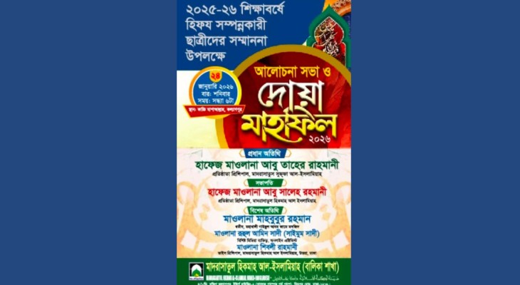 হিফজ সম্পন্নকারী ছাত্রীদের সংবর্ধনা দেবে মাদরাসাতুল হিকমাহ আল-ইসলামিয়াহ
