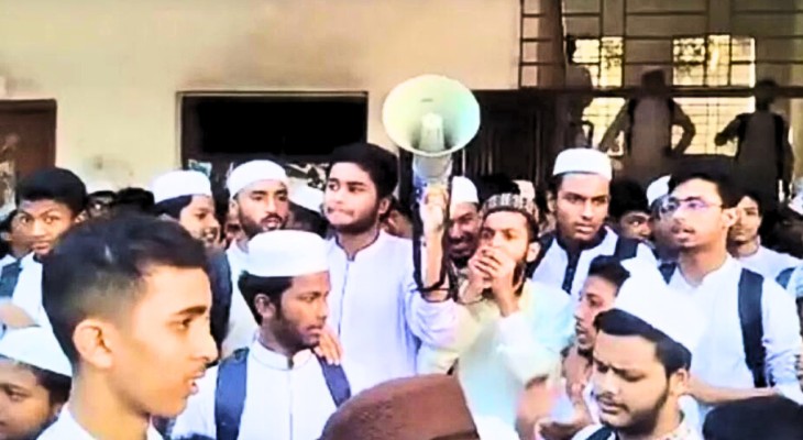 ছাত্রদের চার দফা দাবিতে উত্তাল তামিরুল মিল্লাত মাদরাসা