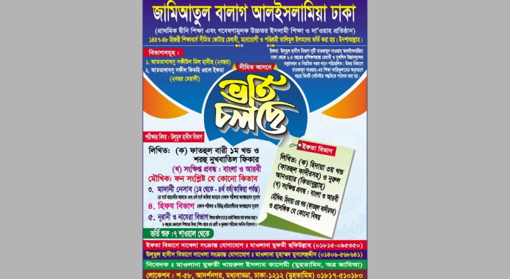 ইফতা ও উলুমিল হাদিসে ভর্তি নিচ্ছে জামিআতুল বালাগ আলইসলামিয়া