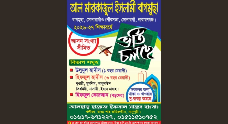 হিফজুল হাদিস, উলুমুল হাদিসসহ অন্যান্য বিভাগে ভর্তি নিচ্ছে আল মারকাজুল ইসলামী বাগমুছা