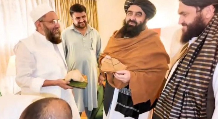 আফগান পররাষ্ট্রমন্ত্রীকে টুপি ও চাদর উপহার দিলেন শায়খুল হিন্দ পরিবার