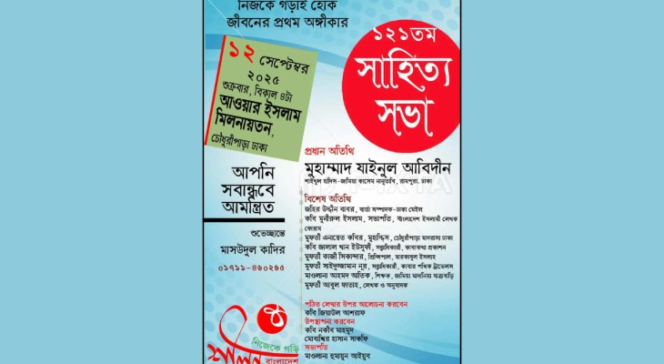 শুক্রবার শীলনের ১২১তম সাহিত্যসভা