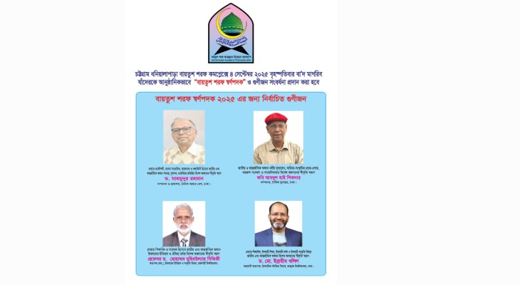 বায়তুশ শরফ স্বর্ণপদক পাচ্ছেন দুই সম্পাদকসহ চার গুণীজন