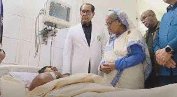 আহত পুলিশ সদস্যদের দেখতে রাজারবাগ হাসপাতালে প্রধানমন্ত্রী