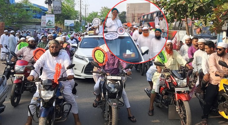গাজীপুর-৩ আসনে মাওলানা এহসানুল হকের নেতৃত্বে গণসংযোগ মিছিল