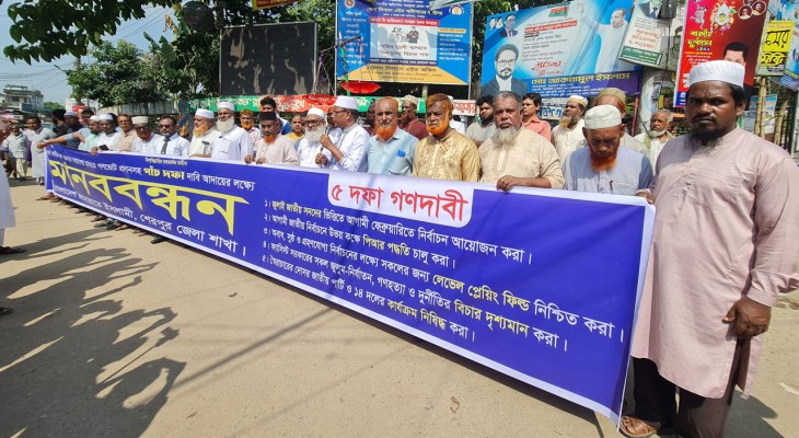 গণভোটসহ ৫ দফা দাবিতে শেরপুরে জামায়াতের মানববন্ধন অনুষ্ঠিত