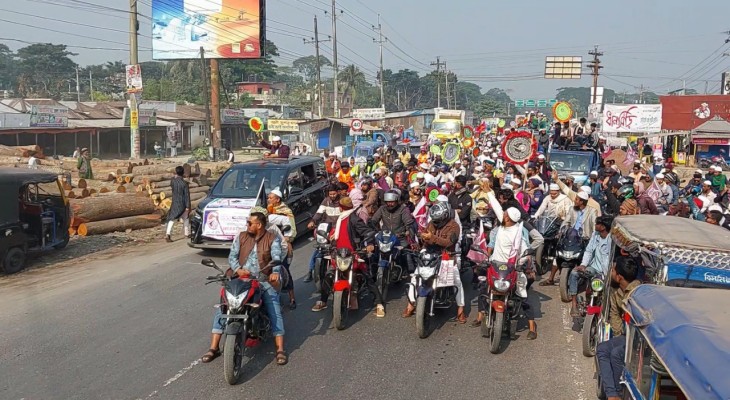 মাদারীপুর-৩ আসনে হাতপাখার প্রার্থীর মোটরসাইকেল শোডাউন