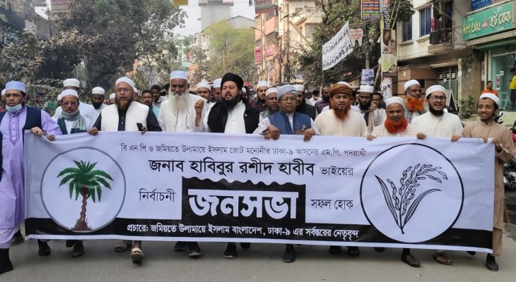 ঢাকা-১৬ আসনে ধানের শীষের প্রার্থীর পক্ষে জমিয়তের প্রচারণা