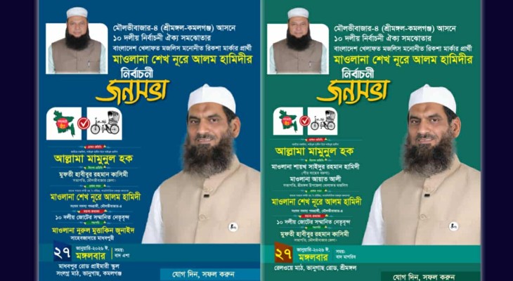 সিলেট-৩ আসনে মাওলানা রাজুকে জেতাতে ঐক্যবদ্ধ ১১ দল