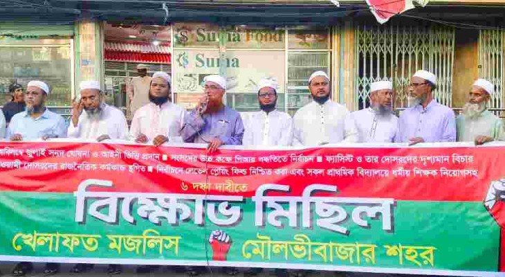 ৬ দফা দাবিতে মৌলভীবাজারে খেলাফত মজলিসের বিক্ষোভ মিছিল