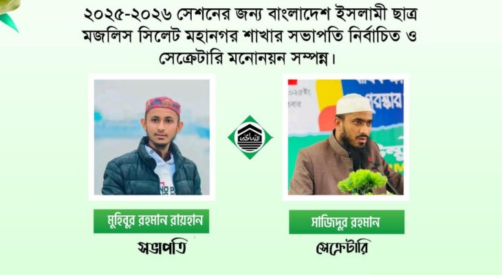 ইসলামী ছাত্র মজলিস সিলেট মহানগরীর কমিটি গঠন - সভাপতি - রায়হান ও সেক্রেটারি সাজিদ