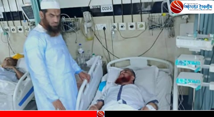 তোফাজ্জল হোসাইন মিয়াজীকে দেখতে হাসপাতালে ইবনে শাইখুল হাদিস