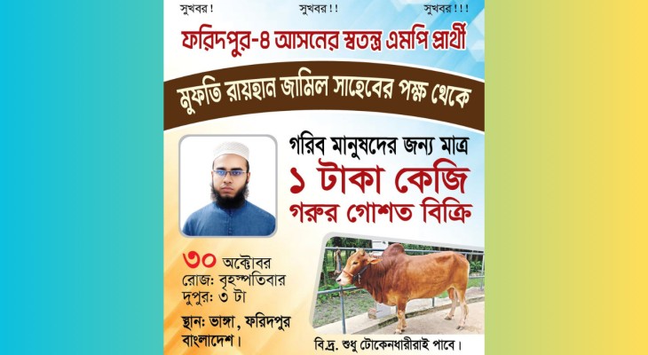 এবার এক টাকা কেজি গরুর গোশত বিক্রির ঘোষণা এমপি প্রার্থীর!
