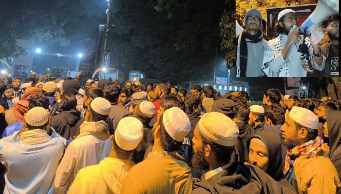 মিছিলে শিক্ষার্থীরা, "দামেস্ক থেকে ফিলিস্তিন, বিজয়ী হবে মুসলিম", "নারায়ে তাকবির, আল্লাহু আকবার", "তেরা মেরা রিশতা কেয়া? লা ইলাহা ইল্লাল্লাহ", "ফ্রম দ্য রিভার টু দ্য সি, প্যালেস্টাইন উইল বি ফ্রি", "পালাইছে রে পালাইছে, বাশার কুকুর পালাইছে।", " ইসলামী ইনকিলাব, জিন্দাবাদ জিন্দাবাদ", "জেগেছে রে জেগেছে রে, মুসলিম উম্মাহ জেগেছে" প্রভৃতি স্লোগান প্রদান করেন।