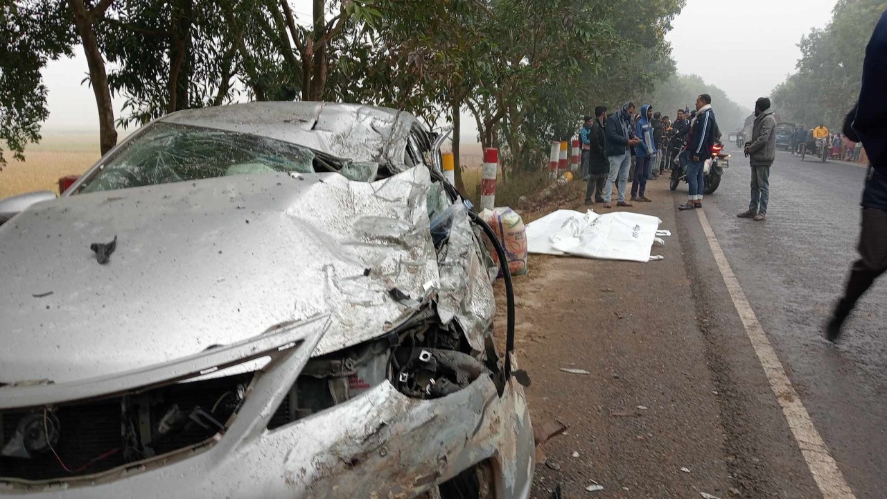 স্থানীয় সূত্রে জানা যায়, নওগাঁ গামী একটি প্রাইভেটকার ও একটি বাসকে রাজশাহীগামী একটি ড্রাম ট্রাক ধাক্কা দিয়ে দ্রুত পালিয়ে যায়। এসময় প্রাইভেটকারটি দুমড়ে মুচরে যায় এবং বাসের সামনের অংশ ক্ষতিগ্রস্ত হয়। এতে ঘটনাস্থলেই প্রাইভেটকারে থাকা দুজন নিহত হয় এবং দুজন আহত হয়। তাৎক্ষণিকভাবে আহতদের উদ্ধার করে রাজশাহী মেডিকেল কলেজ হাসপাতালে পাঠানো হয়েছে।