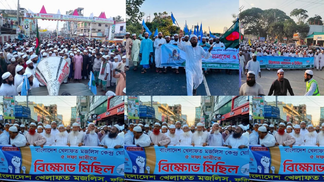 অবিলম্বে জুলাই সনদের পূর্ণাঙ্গ বাস্তবায়নসহ ৫ দফা দাবিতে ঘোষিত কর্মসূচির অংশ হিসেবে বাংলাদেশ খেলাফত মজলিসের উদ্যোগে শুক্রবার (২৬ সেপ্টেম্বর) দেশব্যাপী বিক্ষোভ মিছিল ও সমাবেশ অনুষ্ঠিত হয়েছে। দেশের প্রায় প্রতিটি জেলা ও উপজেলা শাখায় ব্যাপক জনসমাগমে এ কর্মসূচি পালিত হয়। বিক্ষোভ পূর্ব সমাবেশে কেন্দ্রীয় ও স্থানীয় নেতৃবৃন্দ বক্তব্য দেন।