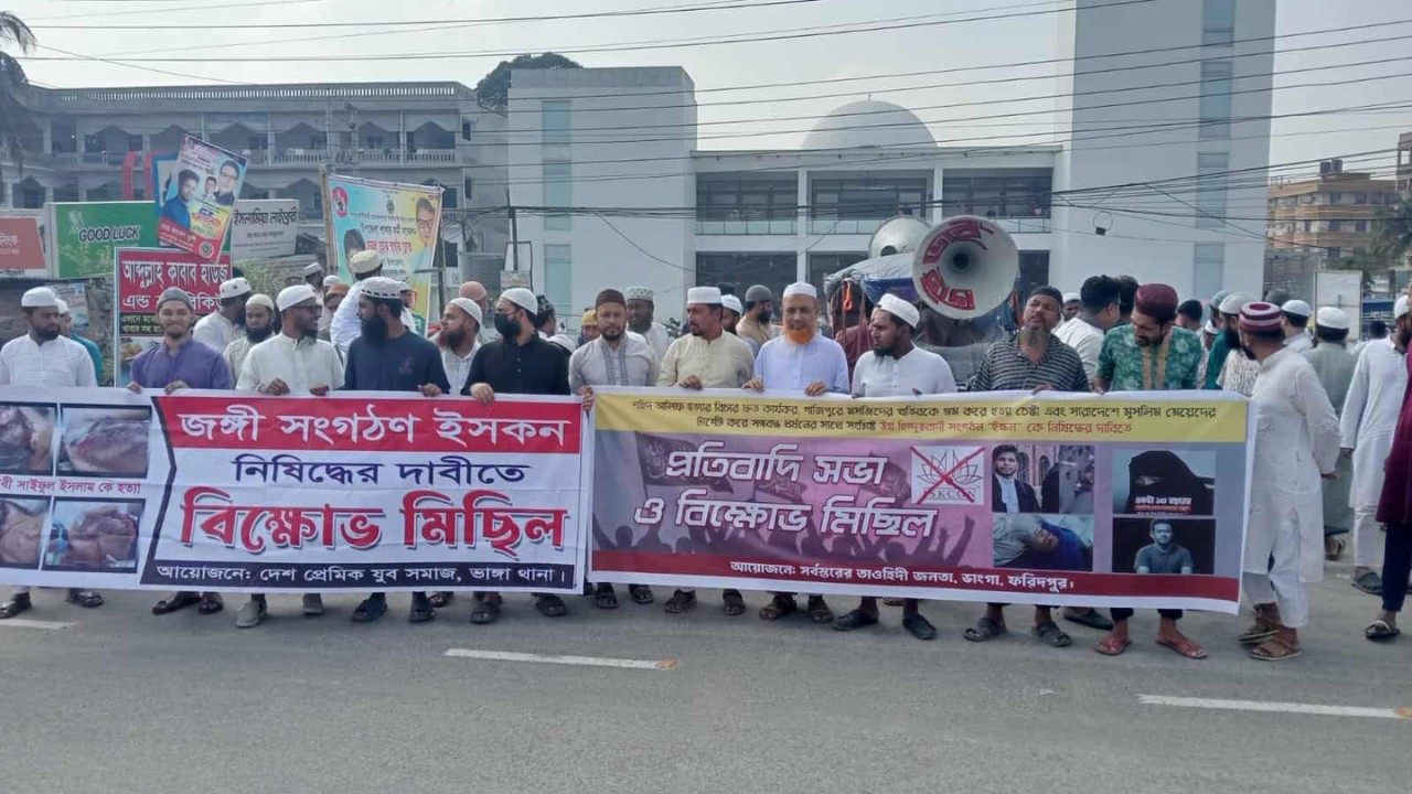 ভাঙ্গায় ইসকনকে নিষিদ্ধের দাবিতে বিক্ষোভ মিছিল ও সমাবেশ