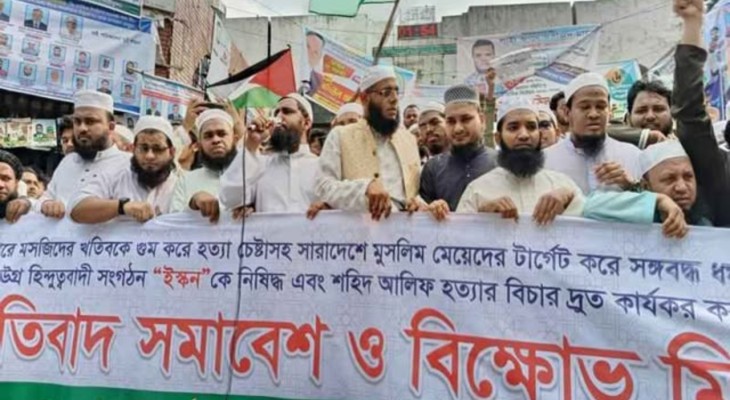 বিক্ষোভ মিছিল ও সমাবেশের নেতৃত্বদানকারী ওসমান গনি আকাশ বলেন, “আমরা দেশের সকল ধর্মপ্রাণ মুসলমান ও আলেম সমাজকে শান্তিপূর্ণভাবে প্রতিবাদে ঐক্যবদ্ধ হওয়ার আহ্বান জানাচ্ছি। বিশেষ করে, দেশের সব মসজিদের সম্মানিত ইমাম ও খতিবদের প্রতি আমাদের অনুরোধ— "জুমার খুতবায় যেন মুসল্লিদের সামনে ইসকন কর্তৃক পরিচালিত এই সন্ত্রাস ও নির্যাতনের বিষয়টি তুলে ধরা হয়, যাতে মানুষ সত্যটি জানতে পারে এবং অন্যায়ের বিরুদ্ধে ঐক্যবদ্ধ হতে পারে।”