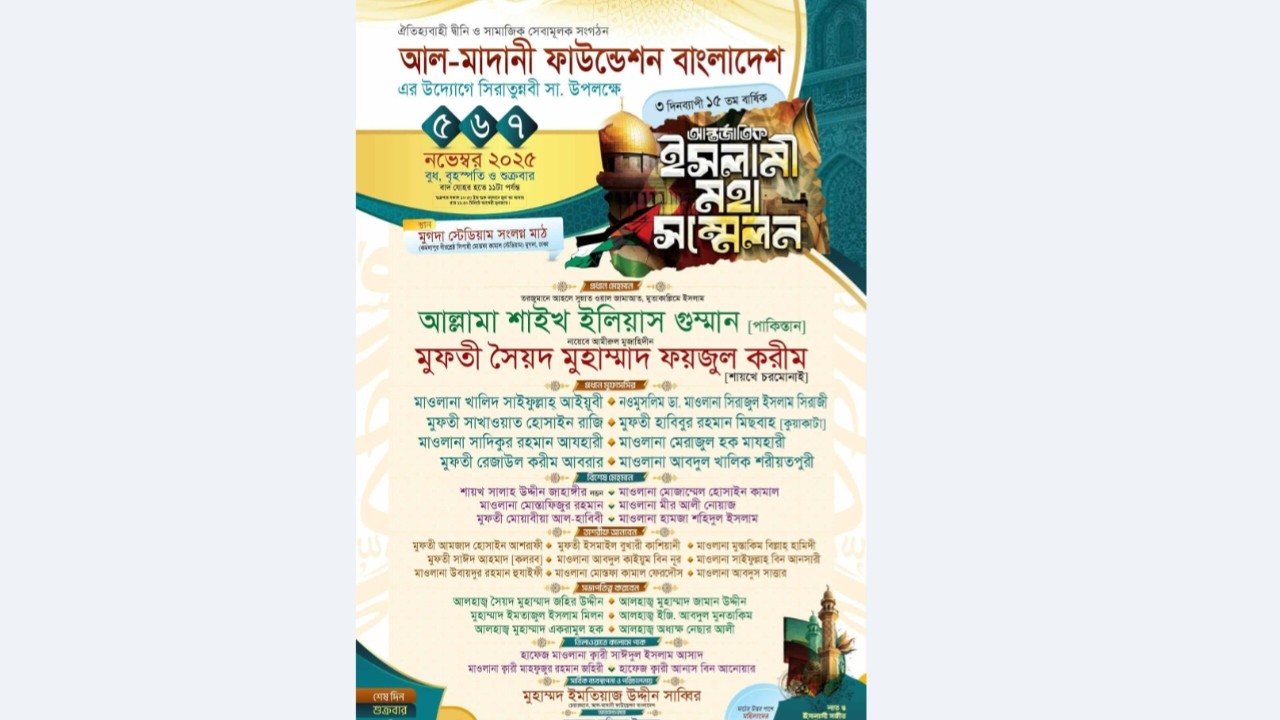 আল-মাদানী ফাউন্ডেশনের ১৫তম আন্তর্জাতিক মহাসম্মেলন ৫-৭ নভেম্বর
