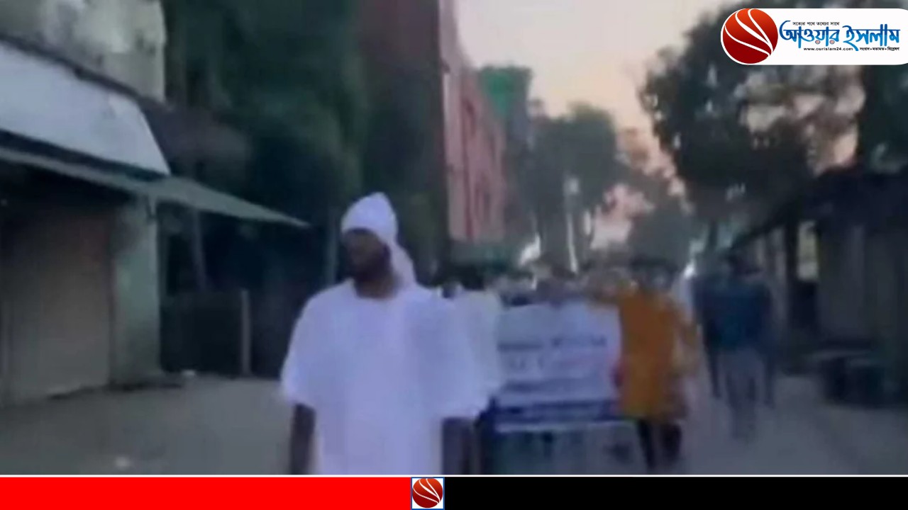 ভাইরাল হওয়া ভিডিওতে দেখা যায় ব্যানারের সামনে কাফনের কাপড় পরে ও মিছিলে অংশগ্রহণকারী নিষিদ্ধ ঘোষিত সংগঠন ছাত্রলীগের নেতাকর্মীদের মাথায় কাফনের কাপড় বাধা ছিল।