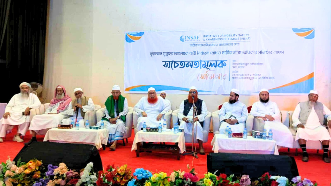 কুরআন সুন্নাহর আলোকে নারীর মর্যাদা, ন্যায্য অধিকার ও নিরাপত্তা প্রতিষ্ঠার লক্ষ্যে ইনসাফ ফাউন্ডেশন সারা দেশে নারী বিষয়ক সচেতনতামূলক কার্যক্রম পরিচালনার সিদ্ধান্ত নিয়েছে। সেই ধারাবাহিকতার অংশ হিসেবে ইনসাফ ফাউন্ডেশন যশোর জেলা শাখা শনিবার (২২ নভেম্বর) যশোর জিলা স্কুল অডিটোরিয়ামে আত্মপ্রকাশ ও প্রেরণামূলক গুরুত্বপূর্ণ সেমিনারের আয়োজন করে।