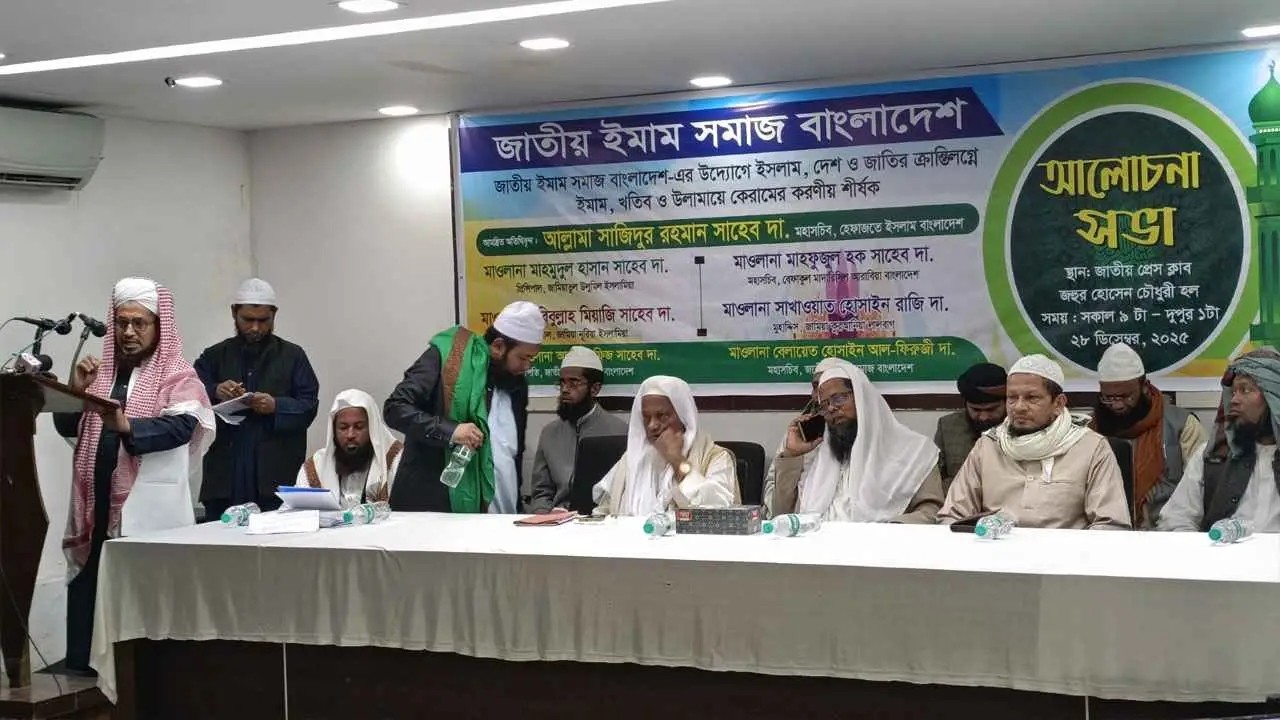 তিনি আরও বলেন, বর্তমান বাস্তবতায় একজন উচ্চশিক্ষিত ও অভিজ্ঞ ইমামকে অনেক ক্ষেত্রে সামান্য বেতনভুক্ত কর্মচারীর মতো আচরণের শিকার হতে হচ্ছে। চাকরির কোনো নিরাপত্তা নেই, নেই আইনি সুরক্ষা। তুচ্ছ অজুহাতে ইমামদের অপসারণ করা হয়, মিম্বরের কণ্ঠ রুদ্ধ করার চেষ্টা করা হয়।