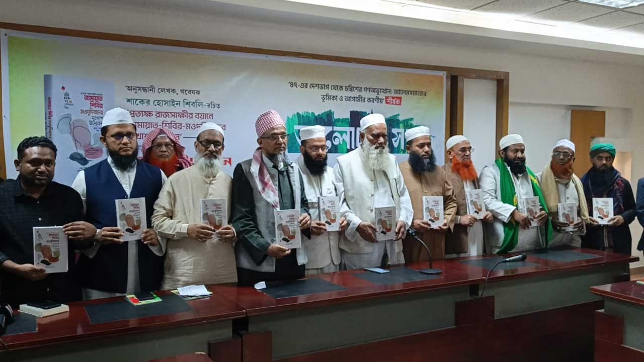 শনিবার (২৪ জানুয়ারি) ‘৪৭-এর দেশভাগ থেকে চব্বিশের গণঅভ্যুত্থান: আলেমসমাজের ভূমিকা ও আগামীর করণীয়’ শীর্ষক আলোচনা সভায় বক্তারা এসব কথা বলেন। ইসলামী আকিদা সংরক্ষণ কমিটির আহ্বায়ক মুফতি রিজওয়ান রফীকির সভাপতিত্বে আয়োজিত এ অনুষ্ঠানে অনুসন্ধানী লেখক, গবেষক শাকের হোসাইন শিবলি রচিত ‘প্রত্যক্ষ রাজসাক্ষীর বয়ানে জামায়াত-শিবির-মওদুদিবাদের মুখোশ উন্মোচন’ প্রামাণ্য গ্রন্থের মোড়ক উন্মোচন করা হয়।