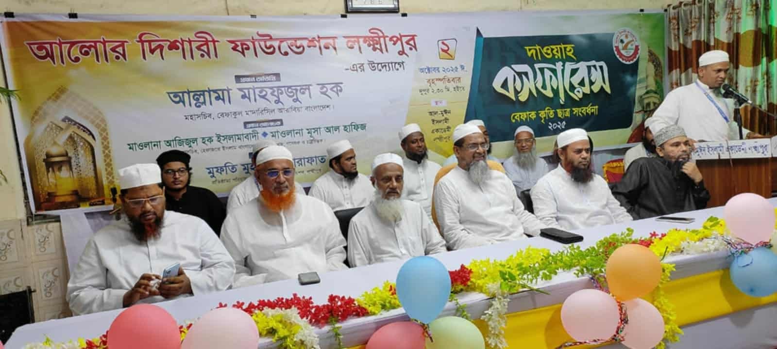 কওমি মাদরাসা শিক্ষাবোর্ড বেফাকুল মাদারিসিল আরাবিয়ার ৪৭তম কেন্দ্রীয় পরীক্ষায় মুমতায (স্টার মার্ক) প্রাপ্ত এবং মেধা তালিকায় উত্তীর্ণ কৃতি শিক্ষার্থীদের সংবর্ধনা দিয়েছে লক্ষ্মীপুরের মেধাবী তরুণ আলেমদের ঐক্যবদ্ধ প্লাটফর্ম আলোর দিশারী ফাউন্ডেশন লক্ষ্মীপুর