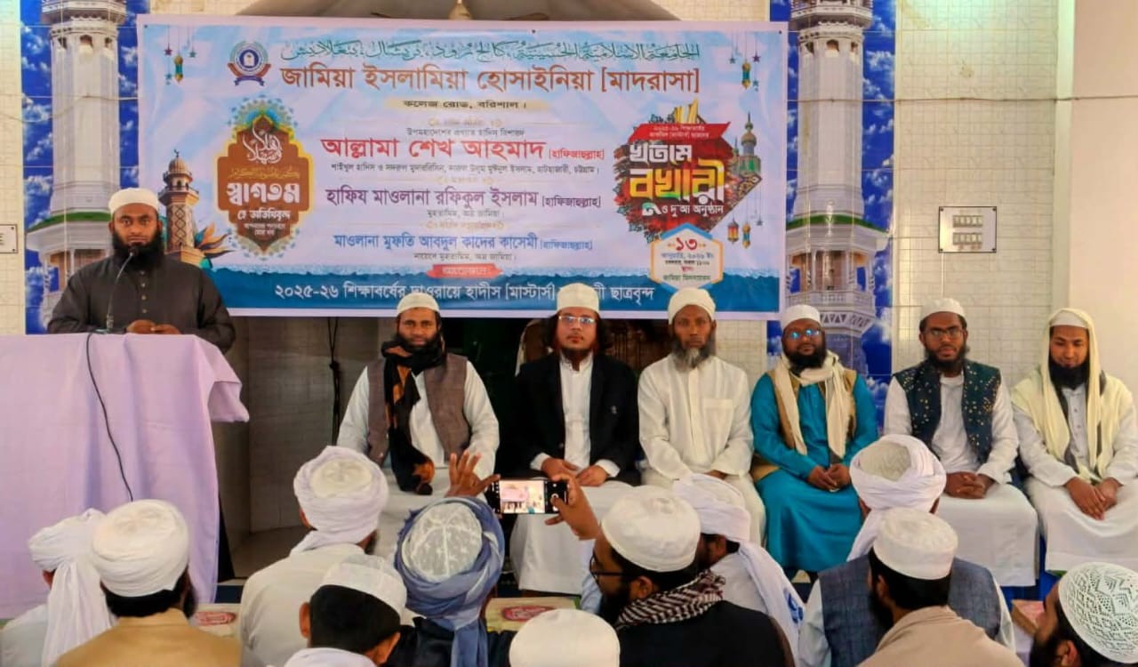 দক্ষিণবঙ্গের খ্যাতিমান দ্বীনি শিক্ষা প্রতিষ্ঠান জামিয়া ইসলামিয়া হোসাইনিয়া-তে ২০২৫-২৬ শিক্ষাবর্ষের তাকমীল জামাতের সমাপনী দরস ও দোয়া অনুষ্ঠান অনুষ্ঠিত হয়েছে।