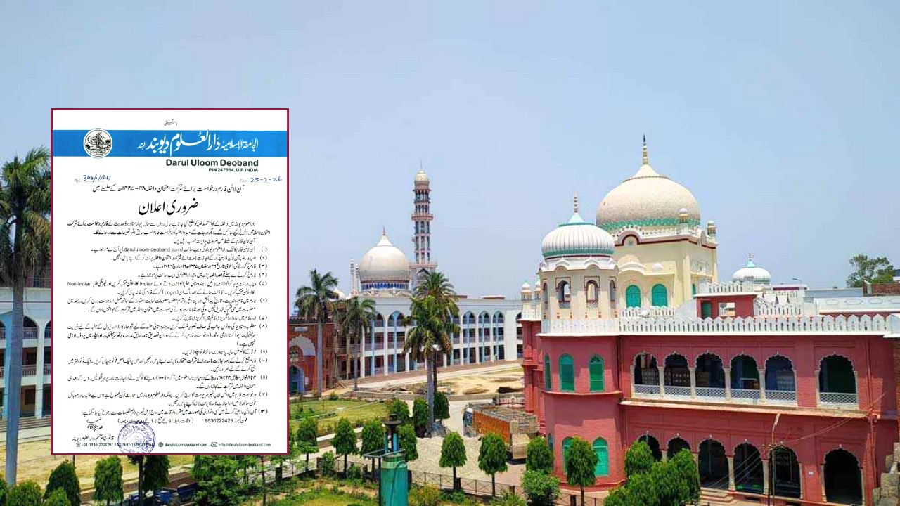 (১) অনলাইন ফরম লিঙ্ক ২৫-০২-২০২৬ থেকে দারুল উলুম দেওবন্দের ওয়েবসাইটে (darululoom-deoband.com) পাওয়া যাবে।