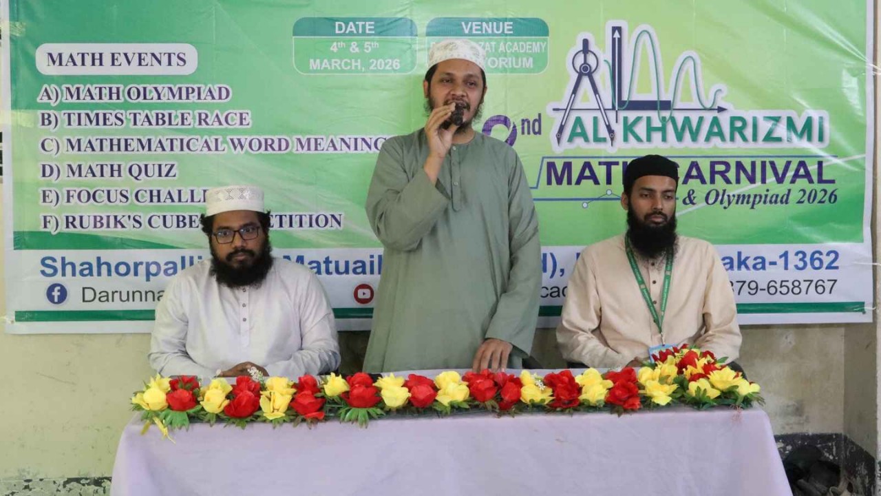 শিক্ষার্থীদের গণিতভীতি দূর করা এবং যুক্তিনির্ভর চিন্তার বিকাশ ঘটানোর লক্ষ্যে রাজধানীর দারুননাজাত একাডেমিতে আয়োজন করা হয় দ্বিতীয় আল খাওয়ারিজমি ম্যাথ কার্নিভাল ও অলিম্পিয়াড ২০২৬। এতে তিন শতাধিক শিক্ষার্থী বিভিন্ন গণিতভিত্তিক ইভেন্ট ও প্রতিযোগিতায় অংশ নেয়।