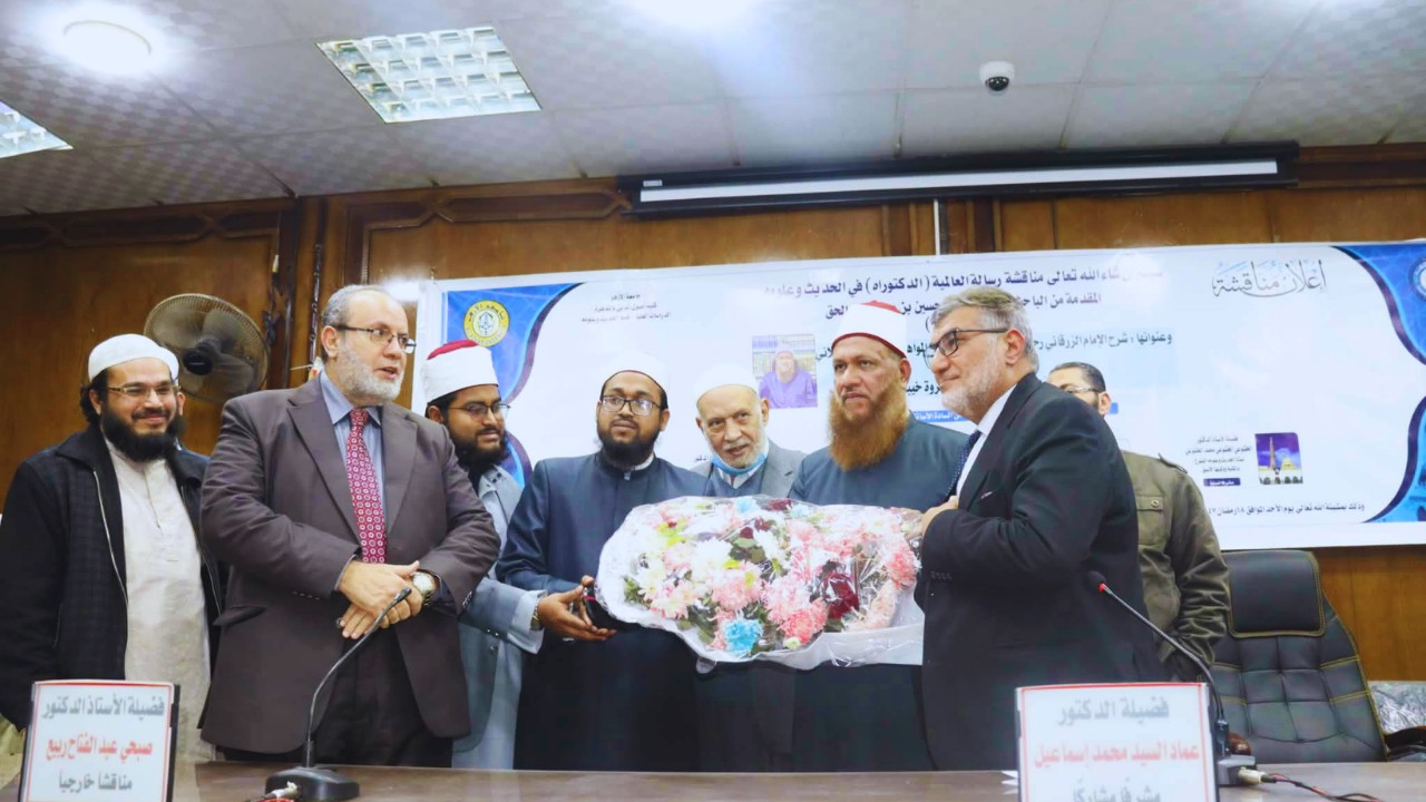 মিসরের ঐতিহ্যবাহী আল-আজহার বিশ্ববিদ্যালয়ের ইসলামিক থিওলোজি ফ্যকাল্টির ইমাম জাহাবি রহ. হলরুমে রোববার (৮ মার্চ ২০২৬) মোতাবেক ১৮ রমজান ১৪৪৭ হিজরি অনুষ্ঠিত হয় উক্ত ফ্যাকাল্টির উলুমুল হাদিস বিভাগের বাংলাদেশি কৃতি গবেষক ড. মুহাম্মাদ মুশাররাফ হুসাইন বিন মুহাম্মাদ নূরুল হকের ডক্টরেট (PhD) থিসিস ডিসকাশন সেমিনার।