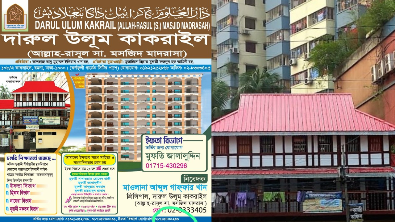 মুজাহিদে মিল্লাত মুফতী ফজলুল হক আমিনী রহ.-এর হাতেগড়া প্রতিষ্ঠান দারুল উলূম কাকরাইল। কর্ণফুলী গার্ডেন টাওয়ারে পাশে অবস্থিত মাদরাসাটি আল্লাহ-রাসুল সা. মসজিদ মাদরাসা হিসেবে পরিচিত। হিফজ, নাজেরা ও নূরানী মক্তব বিভাগের পাশাপাশি এখানে ইফতা বিভাগও রয়েছে। ইতোমধ্যে প্রতিষ্ঠানটি ইফতা বিভাগের জন্য ‘আদর্শ প্রতিষ্ঠান’ হিসেবে পরিচিতি পেয়েছে। যারা এখান থেকে ইফতা কোর্স সম্পন্ন করেছেন তারা বিশেষ যোগ্যতা অর্জন করে দেশের বিভিন্ন প্রান্তে দ্বীনি খেদমতে নিয়োজিত আছেন। ইফতা বিভাগে ভর্তি কার্যক্রম রমজানে চলমান রয়েছে। আসন ফাঁকা থাকাসাপেক্ষে রমজানের পরও অল্প কিছুদিন ভর্তি নেওয়া হবে।