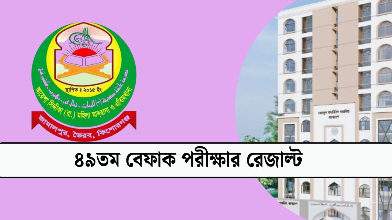 বাংলাদেশ কওমি মাদরাসা শিক্ষাবোর্ড বেফাকুল মাদারিসিল আরাবিয়া বাংলাদেশের ৪৯তম কেন্দ্রীয় পরীক্ষার ফলাফল আনুষ্ঠানিকভাবে প্রকাশিত হয়েছে। এতে ইবতিদাইয়া জামাতে বালিকা শাখায় মেধা তালিকায় শীর্ষস্থান অধিকার করেছে কিশোরগঞ্জের ভৈরবের জামালপুর আয়েশা সিদ্দীকা (রাঃ) মহিলা মাদরাসার ছাত্রী বুশরা আক্তার। তার মোট প্রাপ্ত নম্বর ৫৯৩।
