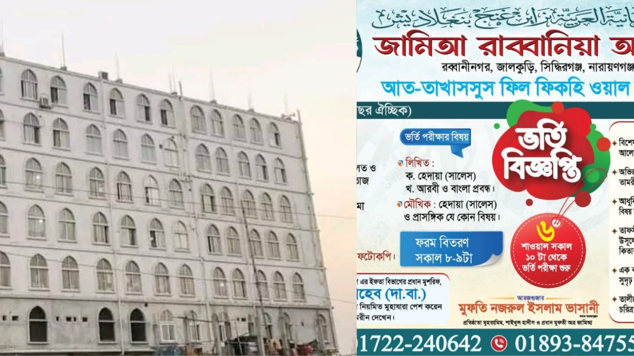 ভর্তির জন্য যোগাযোগ: ০১৯০১৩১৬১৩৬ (তালিমাত), ০১৯০১৩১৬১৩১ (অফিস)