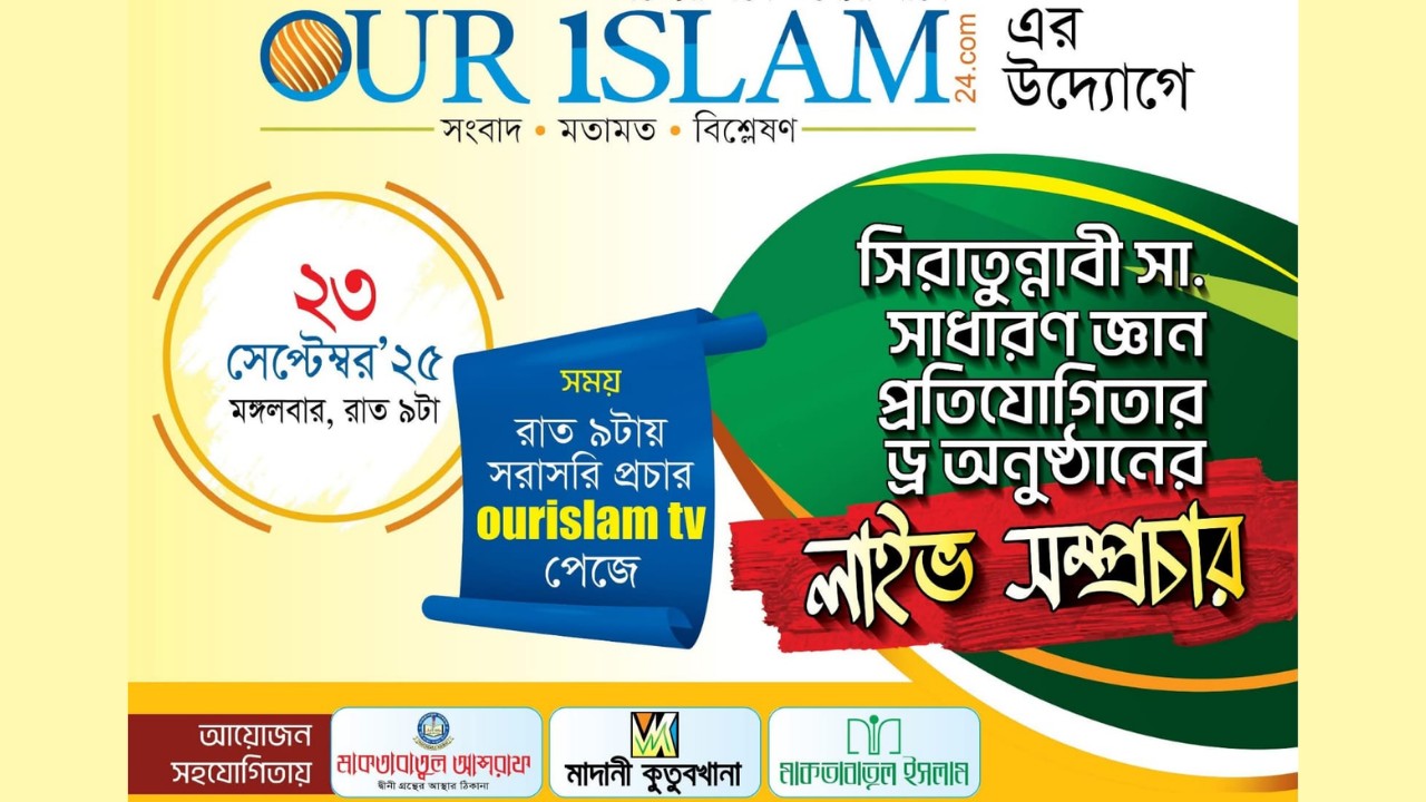 পবিত্র রবিউল আউয়াল মাস উপলক্ষে অনলাইন নিউজ পোর্টাল ‘আওয়ার ইসলাম টোয়েন্টিফোর ডটকম’ আয়োজিত ‘সিরাতুন্নবী সাল্লাল্লাহু আলাইহি ওয়াসাল্লাম সাধারণ জ্ঞান প্রতিযোগিতা–২০২৫’ দেশব্যাপী ব্যাপক সাড়া ফেলেছে। এই প্রতিযোগিতায় অংশ নিয়েছেন হাজারের বেশি প্রতিযোগী। আজ ২৩ সেপ্টেম্বর (মঙ্গলবার) রাত ৯টায় এই প্রতিযোগিতার লাইভ ড্র অনুষ্ঠিত হবে।