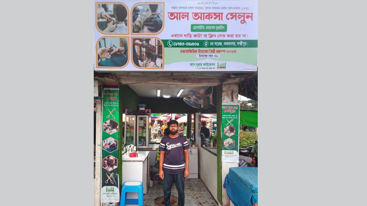 সেলুনটির মালিক নওমুসলিম মোহাম্মদ মুজাহিদ। পূর্বনাম হিরনচন্দ্র শীল।