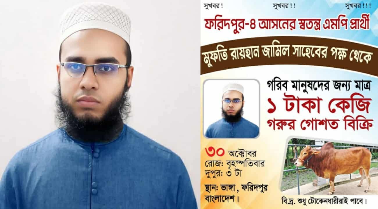 ফরিদপুর-৪ আসনের স্বতন্ত্র সংসদ সদস্য প্রার্থী মুফতি রায়হান জামিল অসহায় ও নিম্ন আয়ের মানুষের জন্য এক অনন্য মানবিক উদ্যোগ নিয়েছেন।