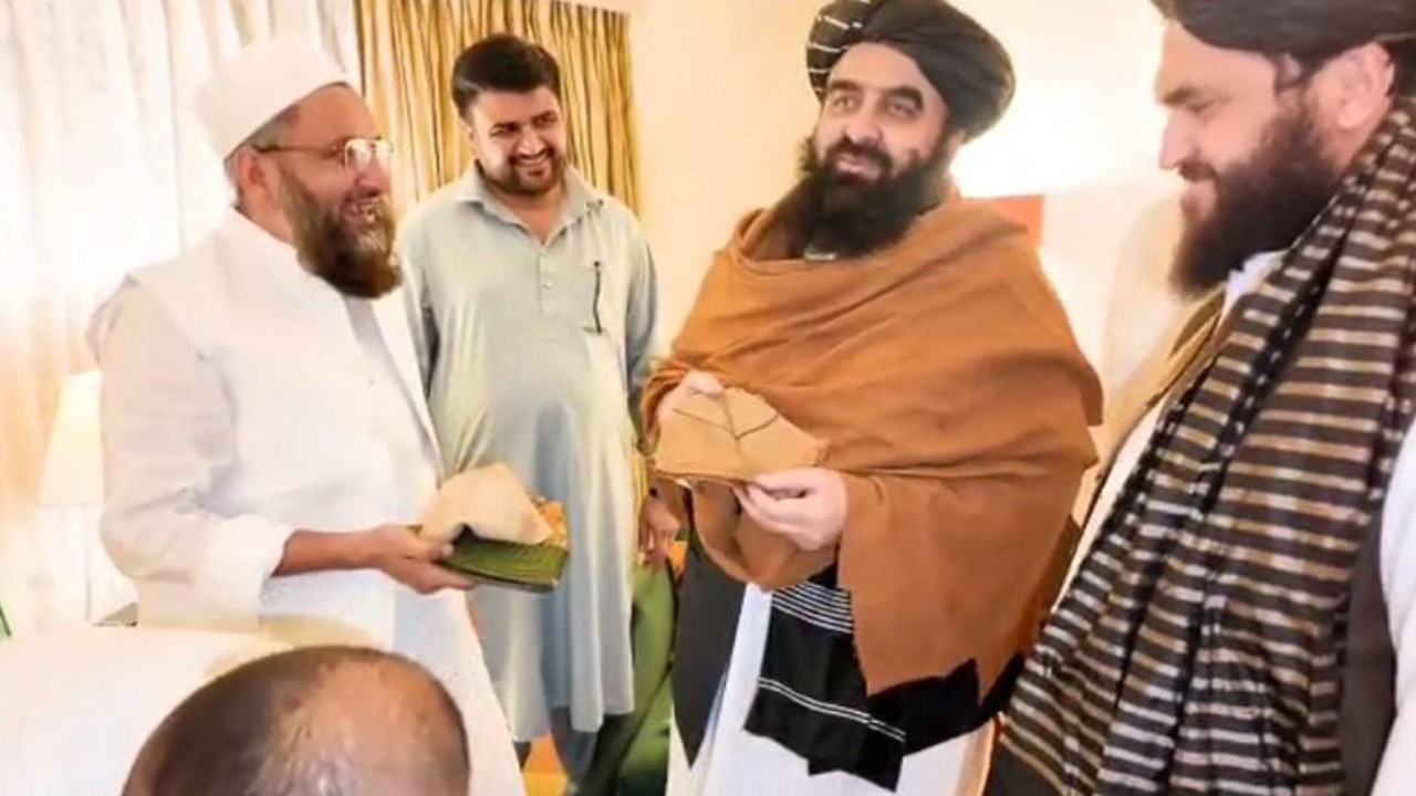 ভারত সফরের শেষ দিনে আফগানিস্তানের পররাষ্ট্রমন্ত্রী মাওলানা আমির খান মুত্তাকীকে দারুল উলুম দেওবন্দের গৌরবময় ঐতিহ্যের ধারক শায়খুল হিন্দ আল্লামা মাহমুদ হাসান দেওবন্দী (রহ.)-এর পরিবারের পক্ষ থেকে টুপি ও চাদর উপহার দেওয়া হয়েছে।