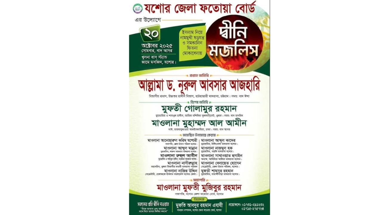 মজলিসে সভাপতিত্ব করবেন যশোর জেলা ফতোয়া বোর্ডের সভাপতি