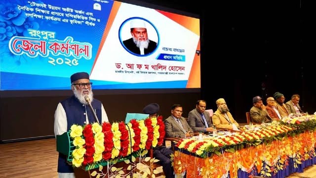 সোমবার (২৯ ডিসেম্বর) রংপুর জেলা শিল্পকলা একাডেমি মিলনায়তনে 'টেকসই উন্নয়ন অভীষ্ট অর্জন এবং নৈতিক শিক্ষার প্রসারে মন্দিরভিত্তিক শিশু ও গণশিক্ষা কার্যক্রম' শীর্ষক প্রকল্পের আওতায় আয়োজিত রংপুর জেলা কর্মশালা-২০২৫ এ প্রধান অতিথির বক্তব্যে তিনি এসব কথা বলেন। মন্দিরভিত্তিক শিশু ও গণশিক্ষা কার্যক্রম-৬ষ্ঠ পর্যায় প্রকল্পের অধীনে হিন্দু ধর্মীয় কল্যাণ ট্রাস্ট এ কর্মশালা আয়োজন করে।