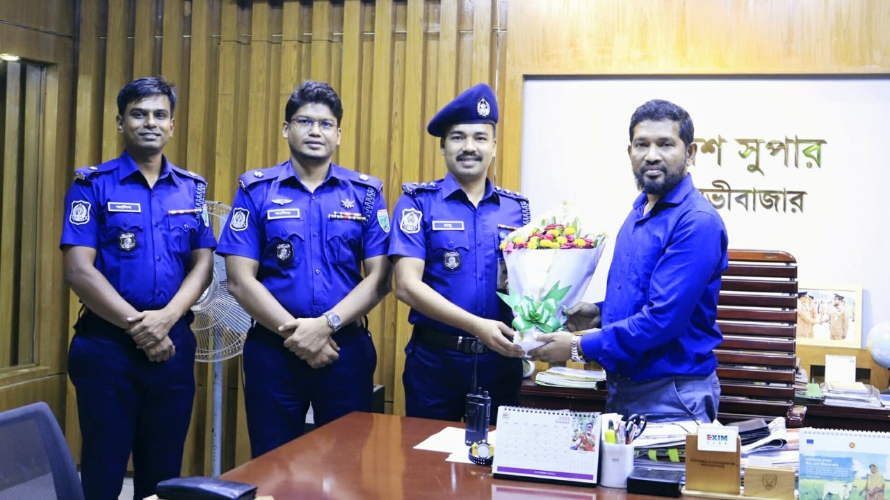 বৃহস্পতিবার (৯ অক্টোবর) দুপুরে জেলা পুলিশ সুপার এম.কে.এইচ. জাহাঙ্গীর হোসেন, পিপিএম-সেবা নবাগত এএসপিকে ফুল দিয়ে স্বাগত জানান।