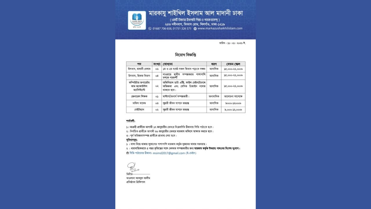 সিভি পাঠানোর ই-মেইল ঠিকানা: msimd2017@gmail.com