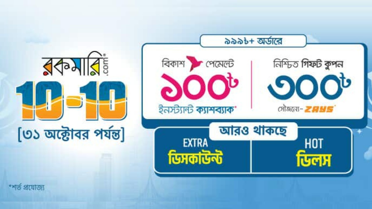 দেশের শীর্ষ ই-কমার্স প্ল্যাটফর্ম রকমারি ডট কম নিয়ে এসেছে আলোচিত অফার ‘রকমারি টেন টেন’, যা ইতিমধ্যেই গ্রাহকদের মাঝে দারুণ সাড়া ফেলেছে।