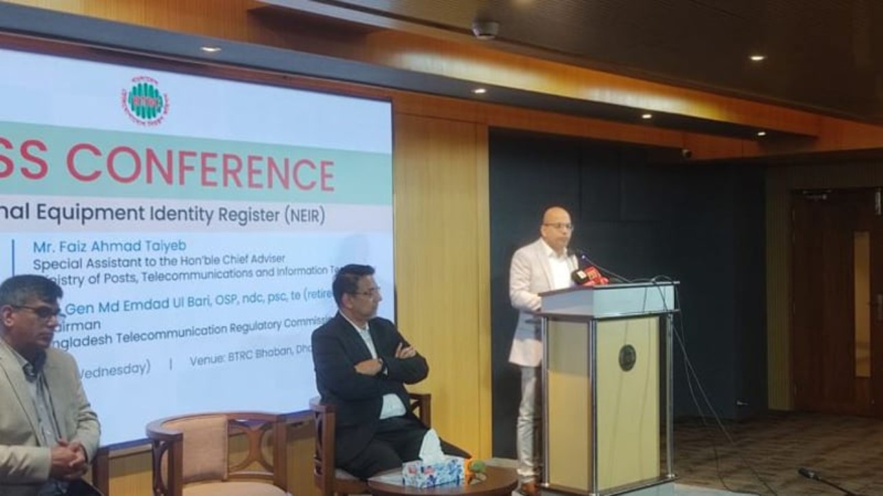 আজ বুধবার রাজধানীর আগারগাঁওয়ে অবস্থিত বাংলাদেশ টেলিযোগাযোগ নিয়ন্ত্রণ কমিশনের (বিটিআরসি) বোর্ডরুমে আয়োজিত সংবাদ সম্মেলনে এ তথ্য জানান প্রধান উপদেষ্টার বিশেষ সহকারী এবং ডাক, টেলিযোগাযোগ ও তথ্যপ্রযুক্তি মন্ত্রণালয়ের দায়িত্বপ্রাপ্ত ফয়েজ আহমদ তৈয়্যব। তিনি বলেন, এনইআইআর চালুর মাধ্যমে দেশের টেলিযোগাযোগ খাতে এক নতুন অধ্যায়ের সূচনা হবে। এটি এমন একটি কেন্দ্রীয় ব্যবস্থা, যা প্রতিটি মোবাইল হ্যান্ডসেটের আন্তর্জাতিকভাবে অনুমোদিত আইএমইআই নম্বরকে ব্যবহারকারীর জাতীয় পরিচয়পত্র (এনআইডি) ও ব্যবহৃত সিমের সঙ্গে যুক্ত করে নিবন্ধিত করবে। ফলে বৈধ ও অবৈধ হ্যান্ডসেট সহজেই চিহ্নিত করা সম্ভব হবে।