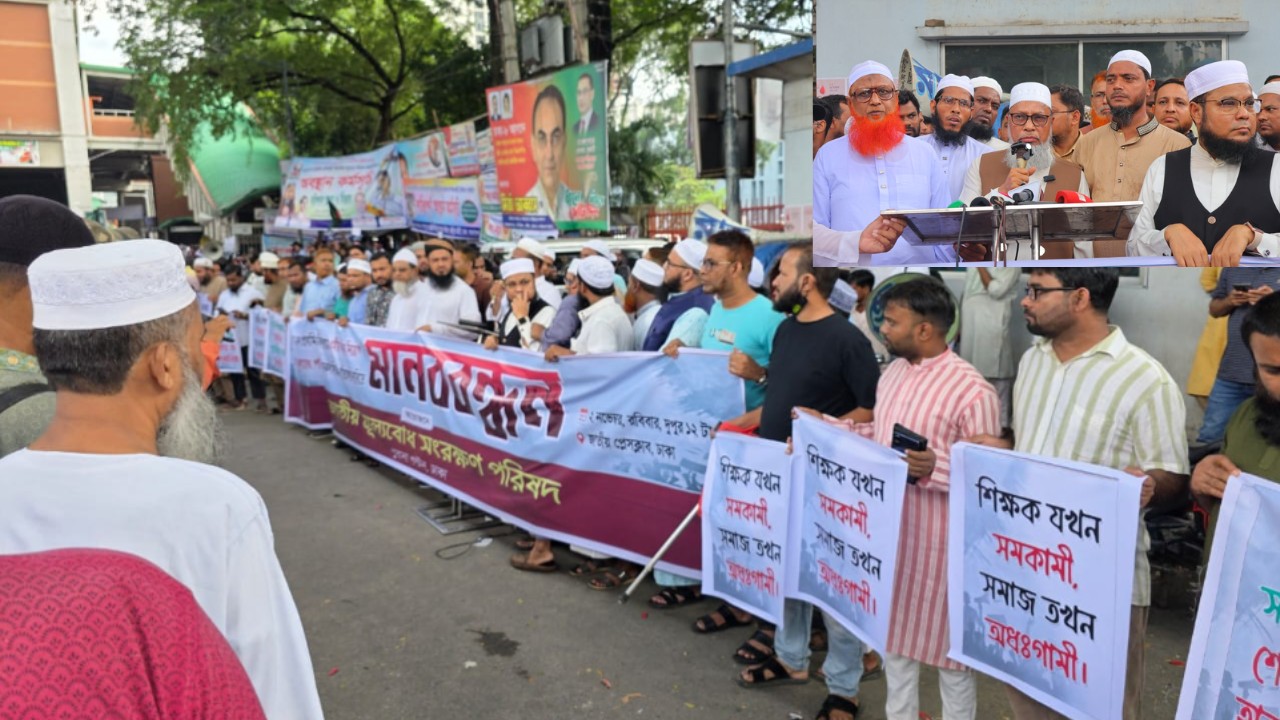 জাতীয় ওলামা মাশায়েখ আইম্মা পরিষদের সাধারণ সম্পাদক মুফতি রেজাউল কারীম আবরার বলেন, আমরা দেখছি বিদ্যালয়গুলোতে নামমাত্র ইসলাম শিক্ষা বই থাকলেও কিন্তু পড়ানোর মতো ধর্মীয় শিক্ষক নেই। ইসলাম ধর্ম পড়ায় হিন্দু শিক্ষক অথবা যিনি কোরআনও শুদ্ধভাবে পড়তে পারেন না। ৫ আগস্টসহ ফ্যাসিস্টবিরোধী সকল আন্দোলন ও এ দেশের গণমানুষের যেকোনো অধিকার প্রতিষ্ঠায় এ দেশের ঈমানদার মুসলমানরাই অগ্রণী ভূমিকা রেখেছেন। অথচ আজ সেই ধর্মপ্রাণ মানুষদের মৌলিক দাবি উপেক্ষা করা হচ্ছে। পরিষ্কার ভাষায় বলছি, অবিলম্বে গানের শিক্ষক নিয়োগসংক্রান্ত প্রজ্ঞাপন বাতিল করুন এবং সারাদেশে ধর্মীয় শিক্ষক নিয়োগ দেওয়ার ব্যবস্থা গ্রহণ করুন।