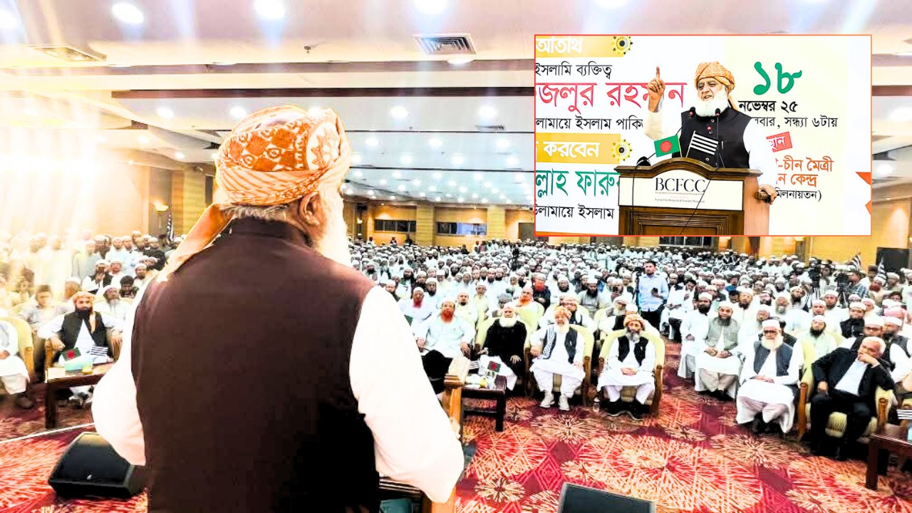 আজ মঙ্গলবার (১৮ নভেম্বর) রাজধানীর বাংলাদেশ-চীন মৈত্রী সম্মেলন কেন্দ্রের হারমনি হলে জমিয়তে উলামায়ে ইসলাম বাংলাদেশের সুধী সমাবেশে প্রধান অতিথির বক্তব্যে জমিয়তে উলামায়ে ইসলাম বাংলাদেশের সভাপতি মাওলানা ফজলুর রহমান এসব কথা বলেন।